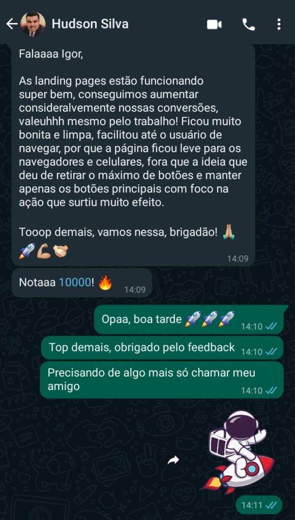 Olá! meu nome é Igor Araujo, sou especialista em Landing Pages com mais de 8 anos de experiência no mercado. Ao longo desse tempo, tive a oportunidade de ajudar mais de 200 clientes a atingirem resultados extraordinários.